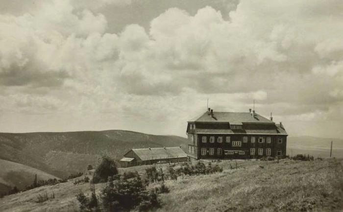Na chatě se scházela skupina mladých protinacistických německých umělců Prager secession, kteří se snažili sblížit na kulturním poli Čechy a Němce. Vůdčí osobností byl divadelník a režisér Kurt Halleger. Spolek, který vznikl v roce 1922, se zpočátku scházel na Ještědu, ale již v polovině 20. let si zvolil chatu na Králickém Sněžníku za místo svých schůzek a také se významně podílel na její originální výzdobě. Spolek měl svoji oblíbenou píseň „V ještědském údolí kvete šeřík“, podle které si dal název „Jescher“ a za symbol zvolil šeřík. Členům spolku se však později nelíbilo, že svůj název spojují s Ještědem, když jezdí na Králický Sněžník. Při nějaké příležitosti si všimli, že sloní kýchnutí zní jako „ješ“. A tak sice jméno spolku ponechali, ale odvodili je od kýchání slona, kterého přijali za svůj symbol.