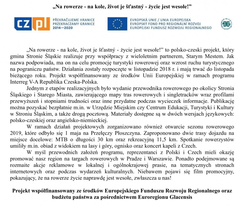 Projekt spolufinancován z Operačního programu příhraniční spolupráce Česká republika – Polská republika 2007-2013. Fond mikroprojektů v Euroregionu Glacensis.